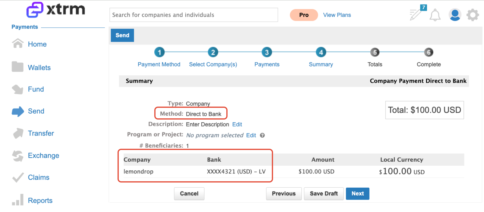- This will initiate the transfer directly from the Xtrm wallet to the beneficiary’s linked bank account